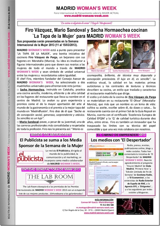 Ayer lunes tubo lugar en Madrid la presentaron de la Tapa de la Mujer en MADRID WOMAN WEEK por los cocineros Mario Sandoval, Sacha Hormaechea y Firo Vázquez
