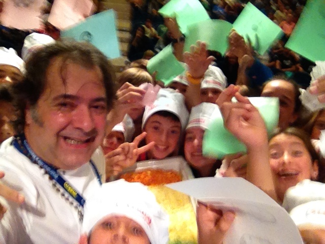 Los jóvenes donostiarras se libraron de las clases por una mañana, pero no de los exámenes. Los dos cocineros pusieron a prueba sus conocimientos culinarios con preguntas nada sencillas. De este modo, fueron subiendo al escenario grupos de jóvenes y tuvieron que responder preguntas de diversa temática, como por ejemplo qué es un aceite virgen. Los ganadores se pudieron llevar cucharas de madera firmadas por el televisivo Ramón Roteta que no dejó de firmar autógrafos. Al finalizar los platos, los cocineros no quisieron perder la ocasión de hacerse un selfie con los jóvenes que les ayudaron en los fogones y los platos que elaboraron durante toda la mañana.