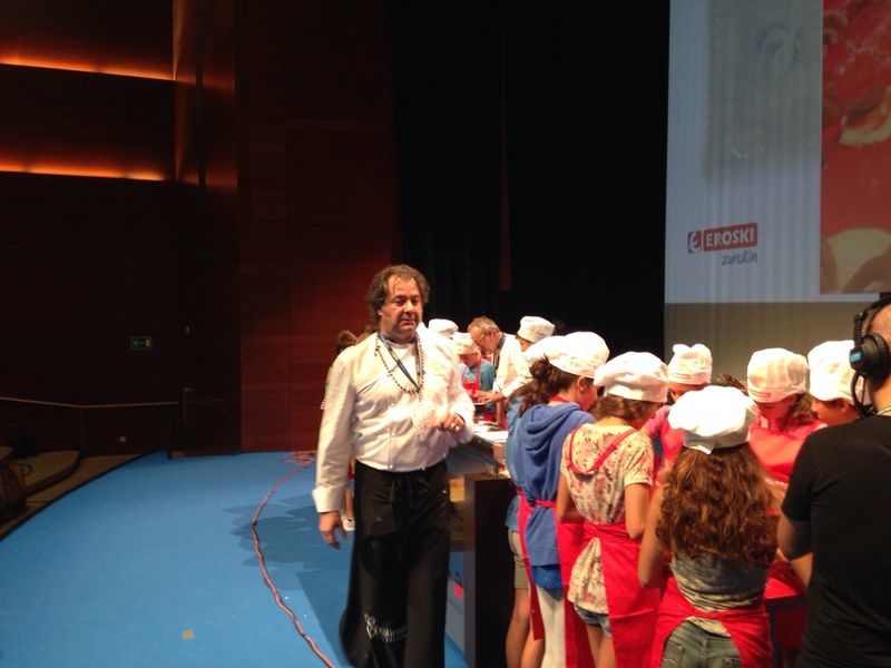 El acto que estuvo dirigido por los cocineros, Ramón Roteta, y Firo Vázquez de Parga del restaurante El Olivar de Moratalla, en la sala de Cámara del Kursaal, fue todo un éxito. Los jóvenes no quisieron quedar sin acercarse a los fogones para realizar elaborados platos con sus propias manos.