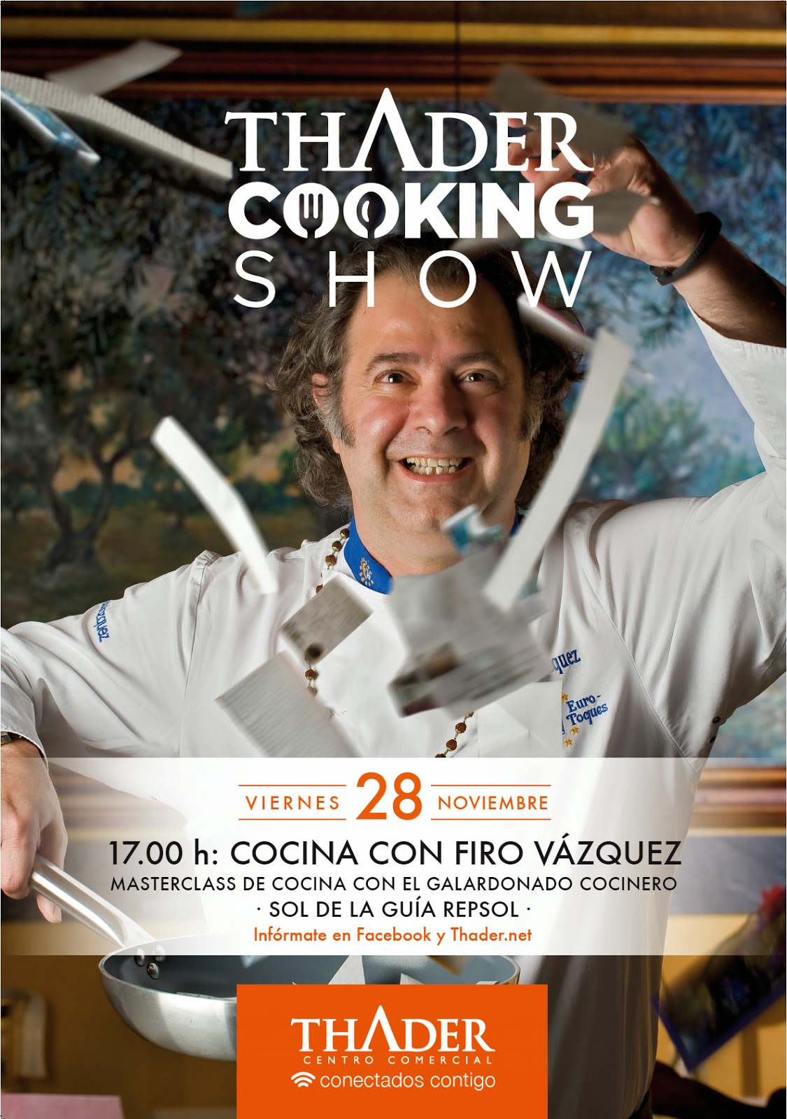 Del 17 al 29 de Noviembre el Centro Comercial Thader organizó el Thader Cooking Show, unas jornadas gastronómicas con talleres de cocina de inscripción gratuita para adultos y niños impartidos por profesionales del sector hostelero. Además se realizó un taller de personalización de delantales y un sorteo de tickets para comer en los distintos locales del centro: por la compra igual o superior a 20€ en cualquier establecimiento de Thader te daban un ticket con premio seguro.