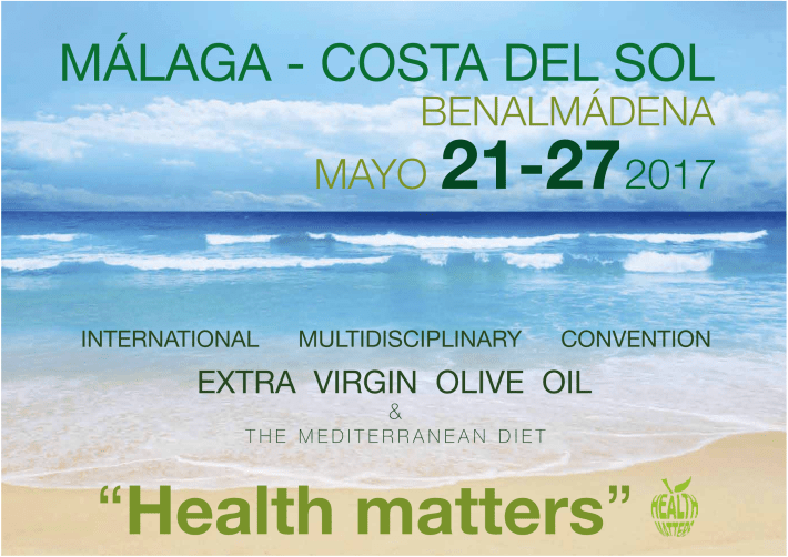 La CONVENCIÓN de EXPERTOS sobre ACEITE DE OLIVA VIRGEN EXTRA & DIETA MEDITERRÁNEA, que se celebrará del 21 al 27 de Mayo próximo en Málaga-Costa del Sol, está organizada por la SOCIEDAD ANDALUZA DEL OLEOCANTHAL – ASOCIACIÓN ESPAÑOLA, (www.oleocanthal.es ) la OLEOCANTHAL INTERNATIONAL SOCIETY (www.oleocanthalsociety.com) y la EXTRA VIRGIN OLIVE OIL INTERNATIONAL COOKING ACADEMY (www.evoo.academy) con la colaboración de SERENDIPITY WORLDWIDE (www.serendipityworldwide.com).